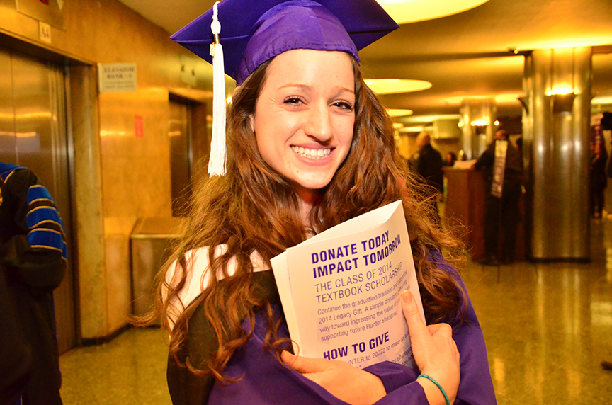 Valedictorian poses at Hunter's Winter Commencement, 2014.